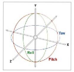 圖1 全運動評估所需的6自由度運動測量:x、y、z軸線性運動和滾動、俯仰、偏航角速率轉動