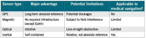 表2 廣泛應用的導航傳感器及其對醫療導航的適用性