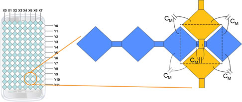 基本上,感測互容的原理(圖1)和感測自容完全不同。感測自容通常是量測含有感測器的電阻-電容(RC)電路之時間常數;感測互容的程序則包括量測X軸與Y軸感測器之間的互動。系統會感測經過每個X軸與Y軸的訊號,借此偵測感測器之間的耦合值(圖2)。耐人尋味的是,手指的觸碰動作會降低互容耦合值,但手指觸碰動作卻會增加自容的值。