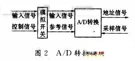 A/D轉換模塊對絕對值信號進行采樣轉化,如圖2所示:模擬多路開關在卦限控制信號的作用下,對絕對值信號進行選擇,其輸出分別作為A/D轉換的輸入信號和參考信號。A/D轉換受控于采樣控制信號,其輸出數據與采樣時刻的相位信號對應。