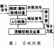 細分主要由以下幾個部分構成,取絕對值、提取卦限信號、A/D轉換、查細分表、邏輯運算等。系統框圖如圖1所示。