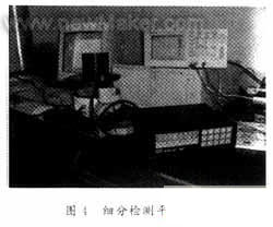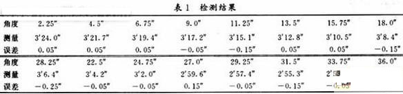 如圖4所示,我們搭建了細分檢測硬件平臺,由標定系統一維平轉臺和同軸的圓光柵編碼器構成。數顯裝置顯示了標定轉臺實際轉過的角度,同時,主機通過接口電路對細分方波進行計數并顯示,經過多次測量,兩顯示值之間的差e≤1,即,小于等于一個當量,達到了設計目的。同時,通過伺服驅動的一維平轉臺系統及檢測機構來定量地檢測分析細分誤差,初始位置:3′26.3″,末位置:2′50.7″,差值:3′26.3″-2′50.7″=35.6″,36.0″-35.6″=0.4″,結果如表1所示。