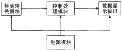 該系統主要以CAV424檢測芯片和微處理器控制模塊為核心, 另外還有輸出顯示模塊以及電源模塊等。系統框圖如圖2所示。