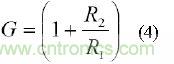 該儀表放大器的傳遞函數在形式上與經典三運放拓撲結構的 傳遞函數相同,其計算公式為