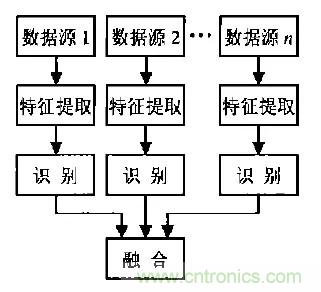 2.特征層融合:特征層融合屬于中間層次,先從每種傳感器提供的觀測數(shù)據(jù)中提取的有代表性的特征,這些特征融合成單一的特征向量,然后運用模式識別的方法進行處理。這種方法的計算量及對通信帶寬的要求相對降低,但由于部分數(shù)據(jù)的舍棄使其準(zhǔn)確性有所下降。