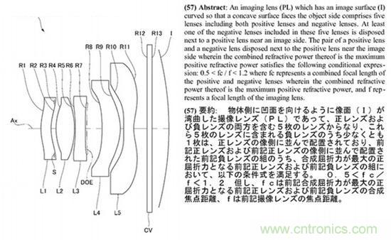 緊接著在2012年12月索尼曲面傳感器專用鏡頭專利公布,針對1.4“及以下傳感器進行設計,結合索尼曲面CMOS傳感器,可以有效消除像場彎曲現象,改善邊緣畫質。