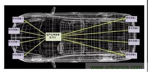 超聲波停車輔助也被稱為停車輔助系統、停車引導系統和倒車輔助。這些系統可實現從簡單地檢測周圍物體并通過聲音警示駕駛員,到幾乎沒有人為操作的自動停車。通常,這些系統擁有4-16個感應器,巧妙地圍繞車身安裝,以提供所需的檢測覆蓋,如圖2所示。