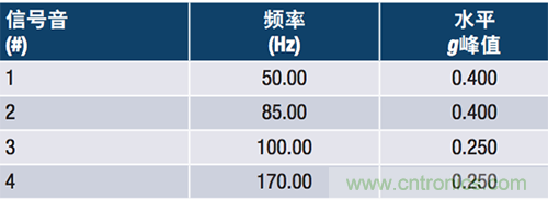 在振動(dòng)測(cè)試儀上重建了一個(gè)實(shí)際場(chǎng)景,例如在基于振動(dòng)的狀態(tài)監(jiān)控中所述的場(chǎng)景,以便利用已知激勵(lì)信號(hào)比較器件。本例展示了一臺(tái)以5100 rpm (85 Hz)運(yùn)轉(zhuǎn)的汽輪機(jī)和一臺(tái)未對(duì)準(zhǔn)的3000rpm (50 Hz)同步發(fā)電機(jī)的振動(dòng)水平。該場(chǎng)景說(shuō)明的是采用隨機(jī)振動(dòng)測(cè)試模式時(shí),振動(dòng)系統(tǒng)經(jīng)編程所產(chǎn)生的頻率和振幅。表1列出了兩個(gè)器件在目標(biāo)頻率的振幅測(cè)量結(jié)果。