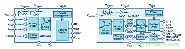 圖1. ADI公司新推出的ADXL356和ADXL357 MEMS加速度計