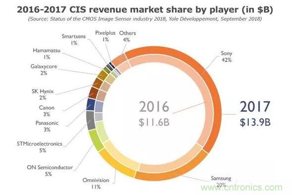據麥姆斯咨詢介紹,CMOS圖像傳感器(CIS)已成為半導體產業的關鍵器件。這不僅是因為所涉及的技術及其帶來的市場營收,而是因為現在已經無法想象智能手機、汽車甚至是房屋如果沒有攝像頭的支持會怎樣。根據Yole最新發布的《CMOS圖像傳感器產業現狀-2018版》報告,2017年CIS產業的市場規模達到了139億美元,預計未來5年的復合年增長率(CAGR)將達到9.4%。