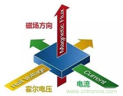在導體上外加與電流方向垂直的磁場,會使得導線中的電子受到洛倫茲力而聚集,從而在電子聚集的方向上產生一個電場,此電場將會使后來的電子受到電力作用而平衡掉磁場造成的洛倫茲力,使得后來的電子能順利通過不會偏移,此稱為霍爾效應。而產生的內建電壓稱為霍爾電壓。