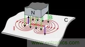 基于電渦流效應的壓力傳感器。電渦流效應是由一個移動的磁場與金屬導體相交,或是由移動的金屬導體與磁場垂直交會所產生。簡而言之,就是電磁感應效應所造成。這個動作產生了一個在導體內循環的電流。